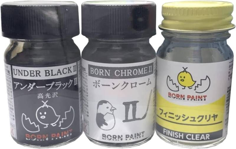 【送料無料対象外】BORN PAINT メッキ調お試しセット(ボーンクロームII・アンダーブラックII・フィニッシュクリヤ) 15mlx3本 プラモデル 塗料