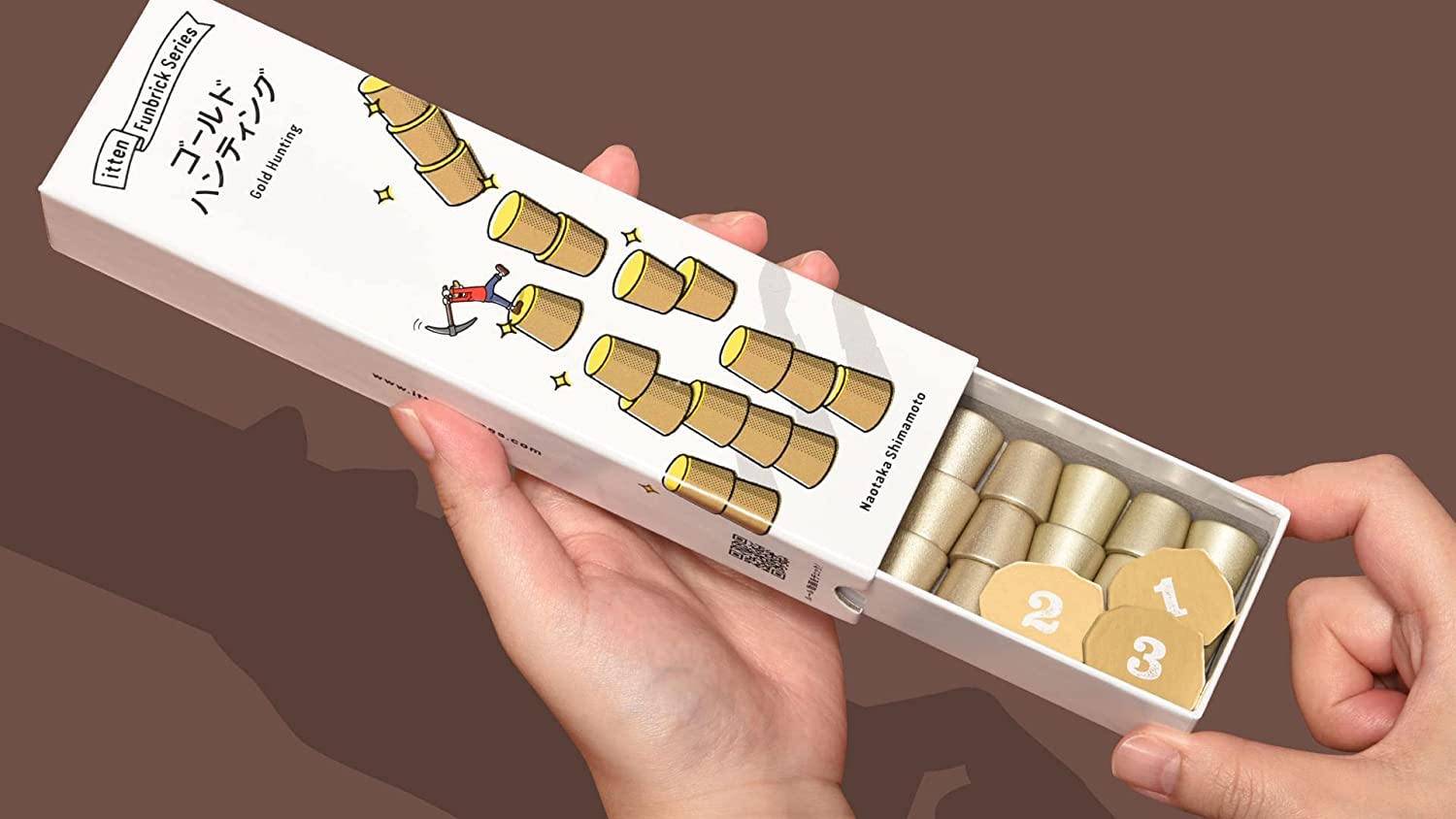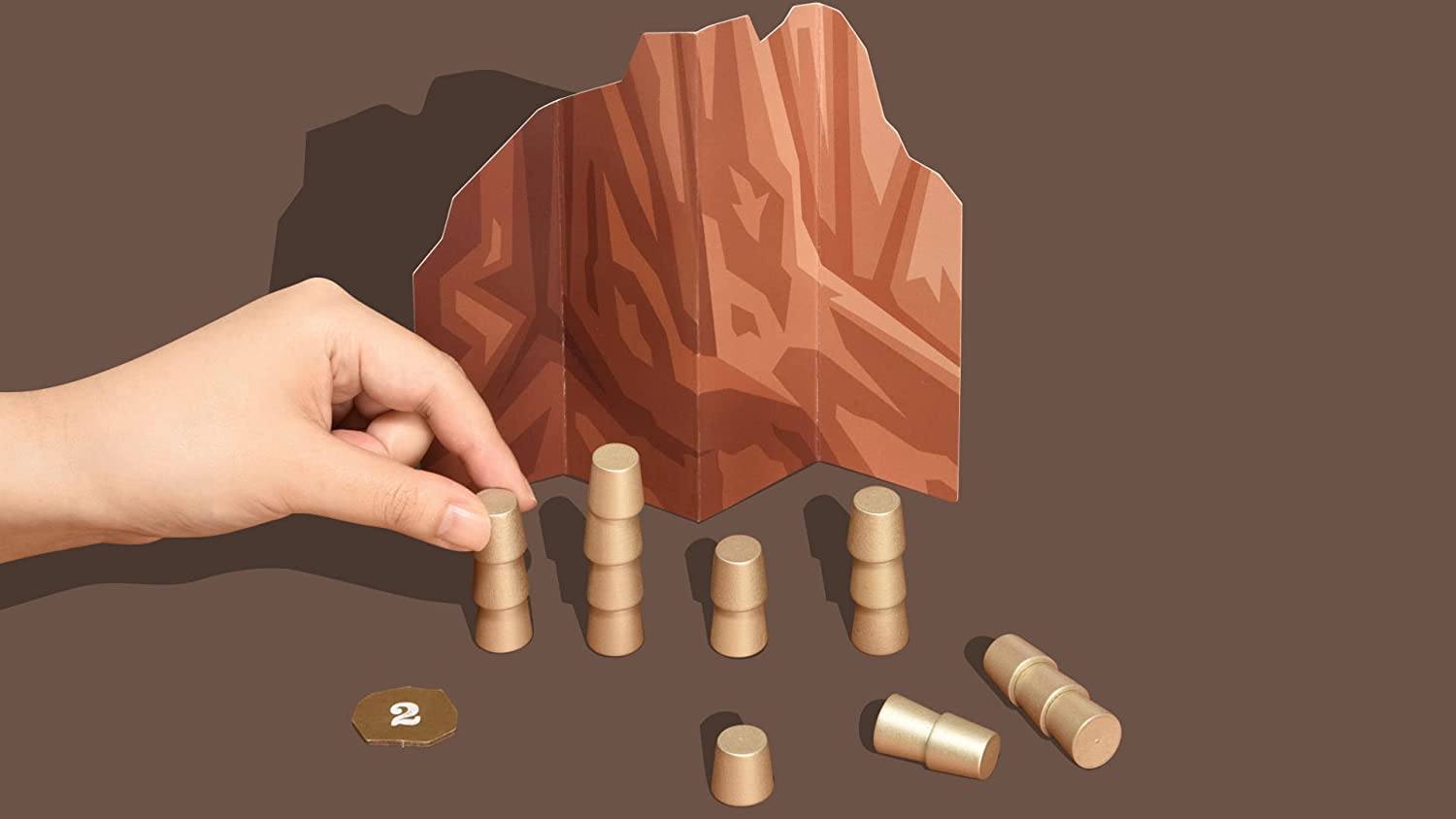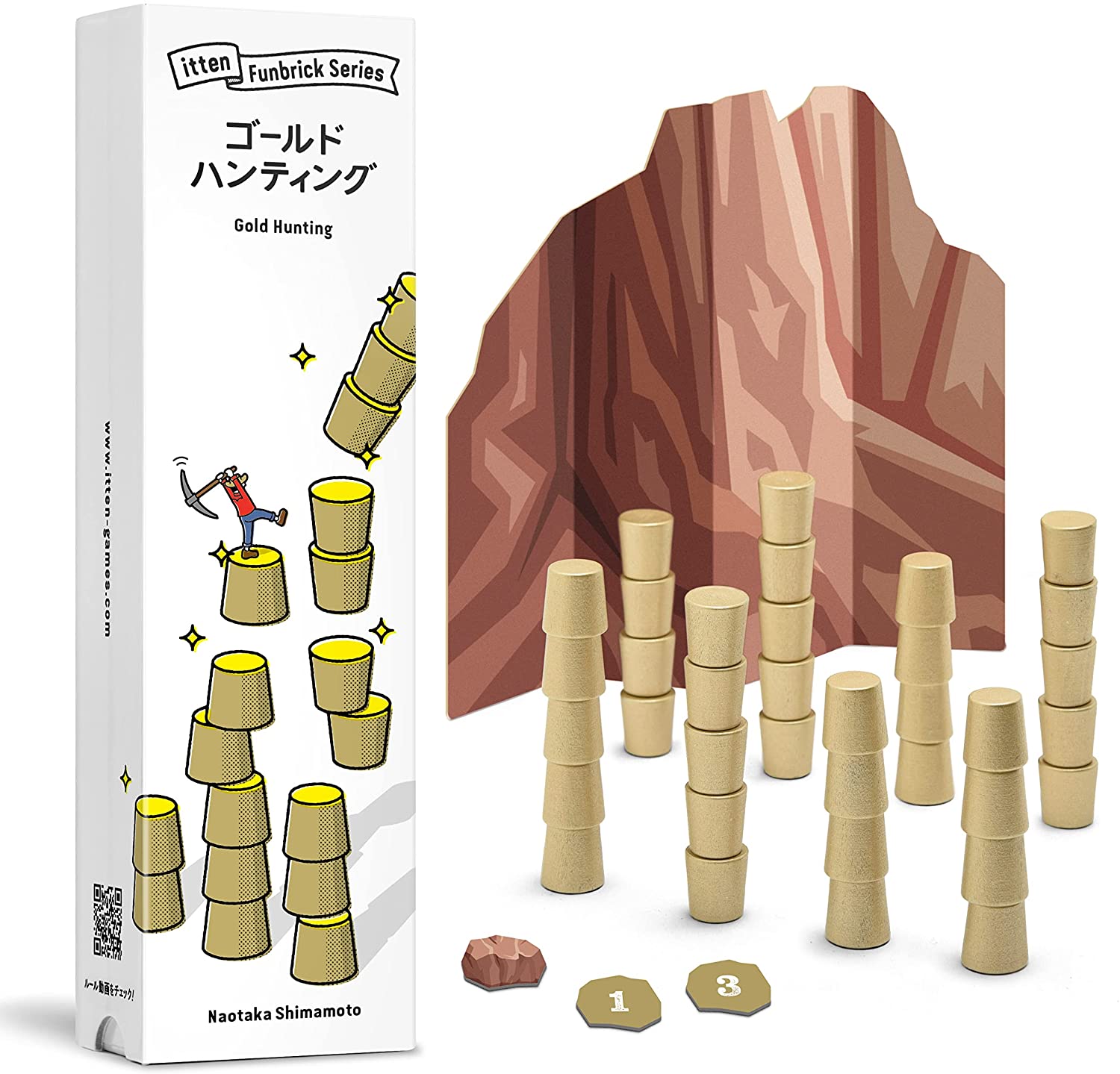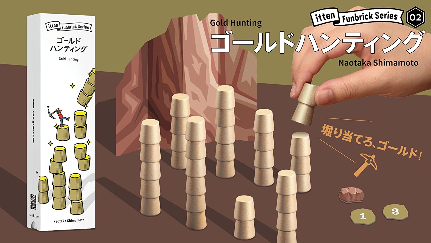 1コマ、2コマ、3コマの金のコマを、相手を騙すように積み上げたらゲームスタート。